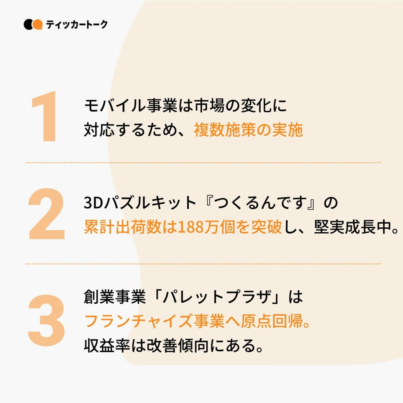 ※この記事は投資の参考となる情報提供を目的としたもので、掲載企業の株式についての投資判断あるいは株価に対する動向に関する助言を行うものではありません。当記事に投資勧誘を意図するものはなく、投資の決定はご自身の判断と責任でなされますようお願い申し上げます。記事に記載された内容は取材時の内容を一言半句違わず記載しているものではなく、話の流れ等が分かりやすいよう幾らか加筆している部分がございます。また、記事に記載された内容等は取材・作成時点のものであり、正確性・完全性を保証するものではなく、今後予告なく修正、変更されることがあります。一部の数値についてはティッカートークが算出しているため、各企業の開示資料とは異なる場合があります。また、発行体の確認を受けていない場合もあります。