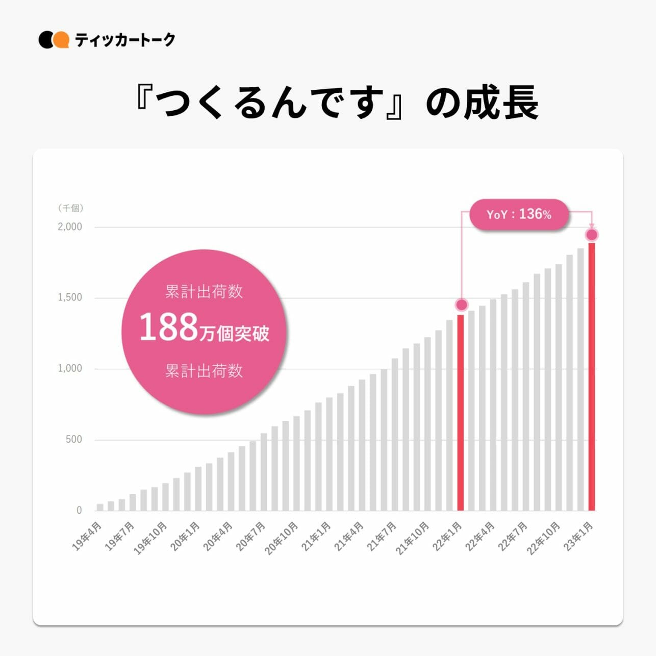 ソウゾウ事業の一事業であるつくるんですシリーズ累計出荷数が188万個を突破出荷個数はYoY136%で成長し販売高は10億円/年の規模となり事業をけん引している