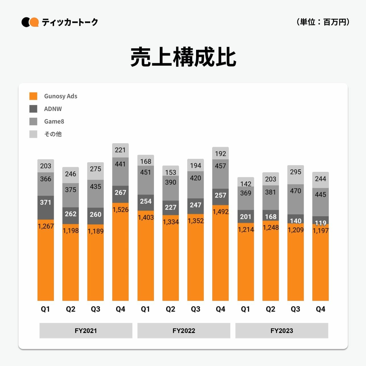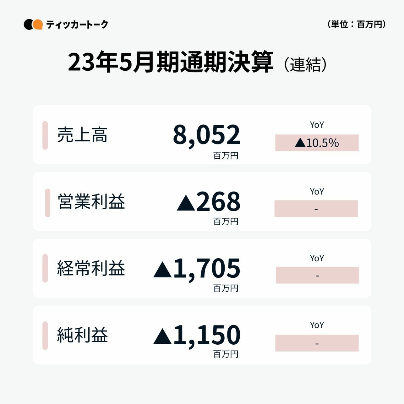 2023年5月期通期の売上高については、グノシーは期初から順調にDAU増加も、ADNWの不調影響と純広告が例年より弱含んだこと等が要因でYonY減収。減収に加えグノシーの再成長に向けた広告宣伝投資の実施により、営業利益は先行的に赤字を計上。