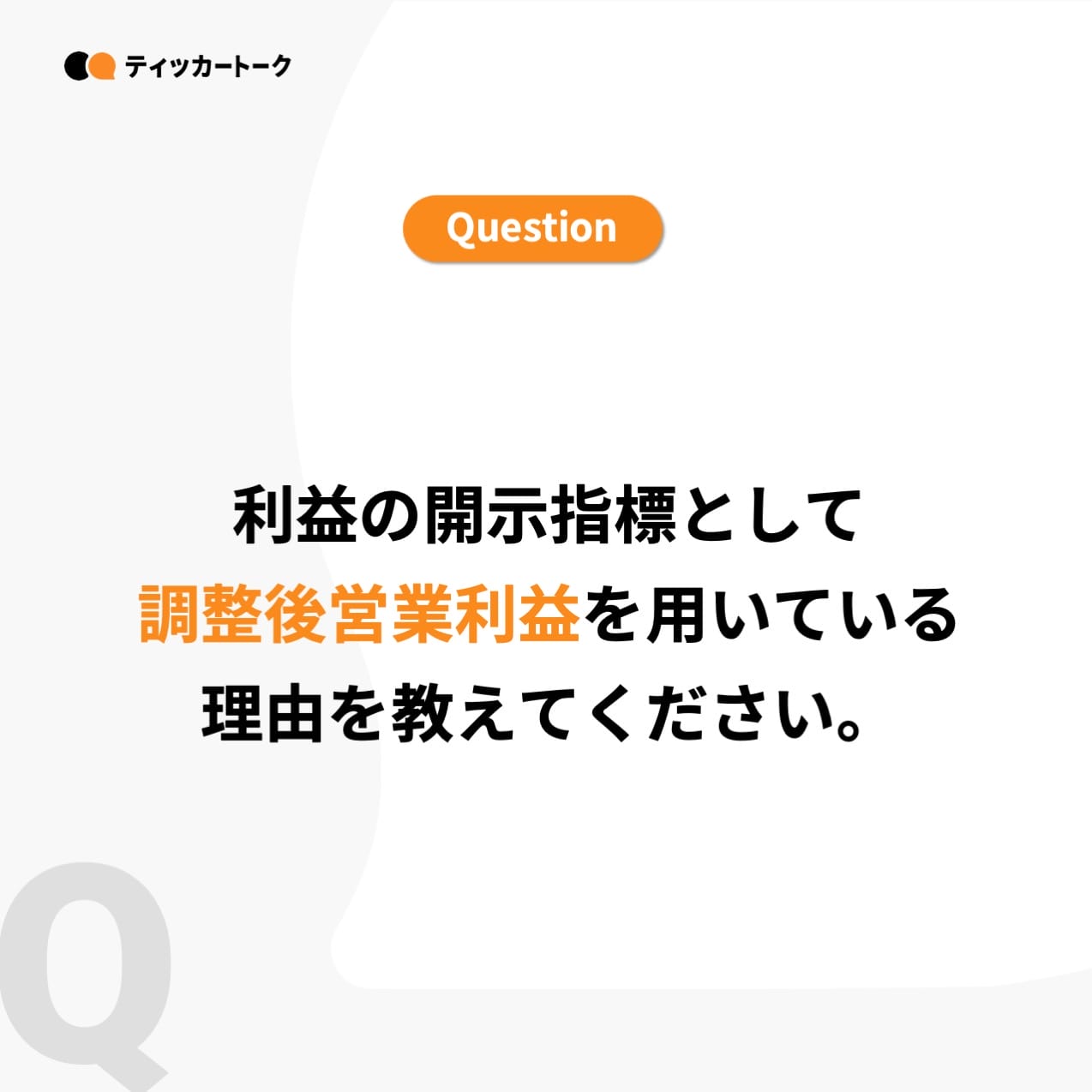 したがって、本質的な収益性を期間比較・国際比較する上で調整後営業利益が有用と判断されるため、当該利益指標を用いています。