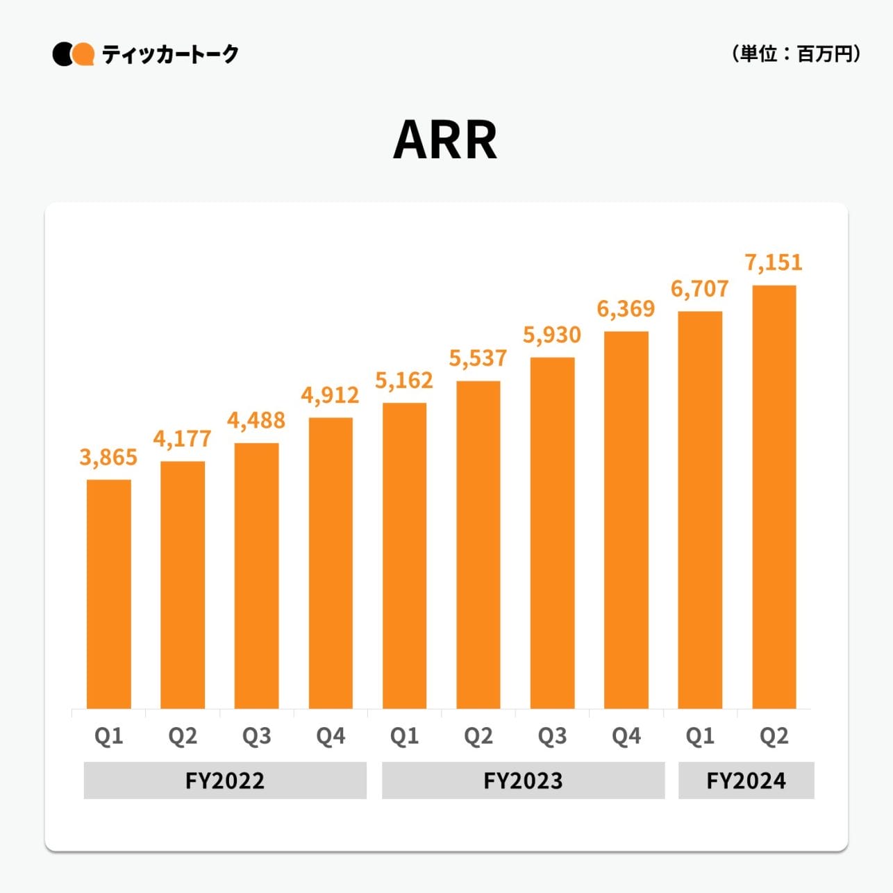 ARRは堅調に成長し、YoYで29.1%増の7,151百万円となった。