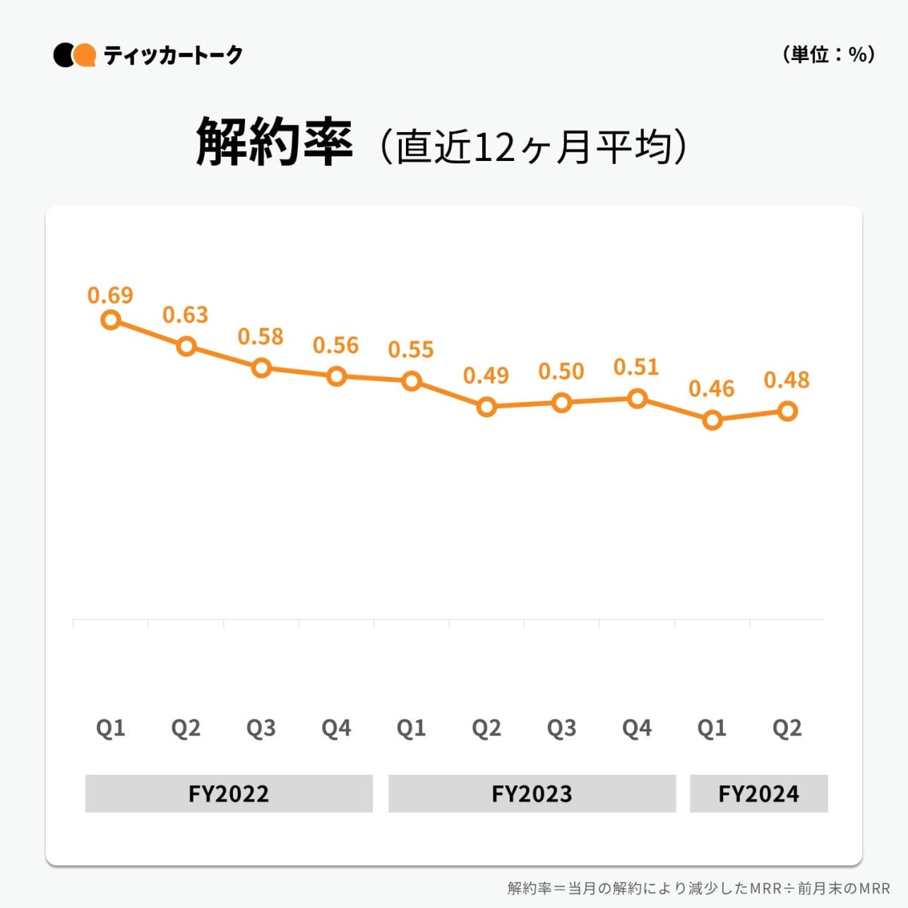 プロダクトの機能強化とカスタマーサクセスの取り組みにより、解約率は0.48%と低水準で推移している。