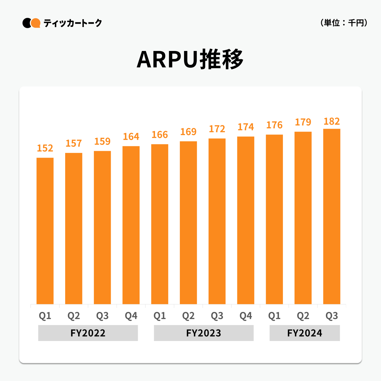 ARPUは、大企業など従業員数の多い顧客の増加を受けて、YoYで6.0%増の182千円となった。