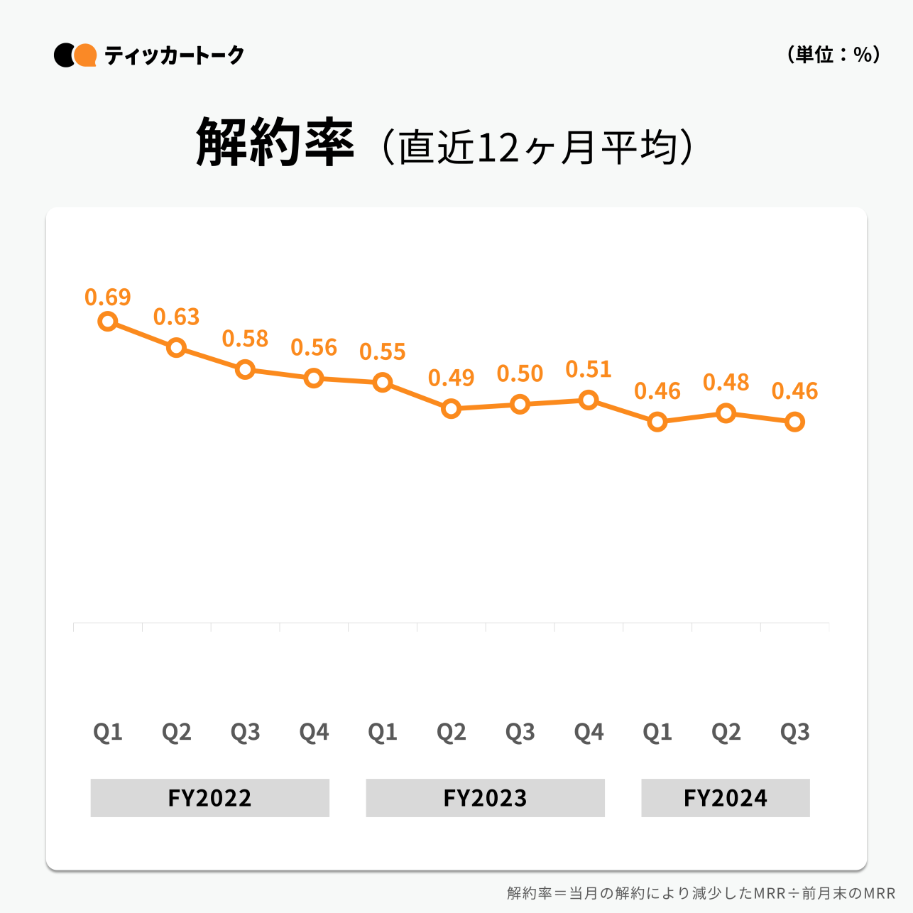 プロダクトの機能強化とカスタマーサクセスの取り組みにより、解約率は0.46%と低水準で推移している。