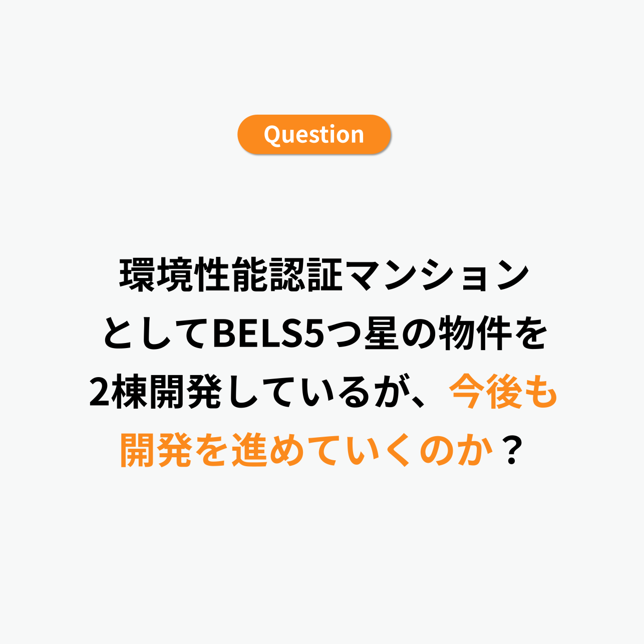 物件価値向上・サステナビリティの観点から、環境性能認証の取得は今後必要になってくることが想定されるので、引き続き開発を進めてまいります。