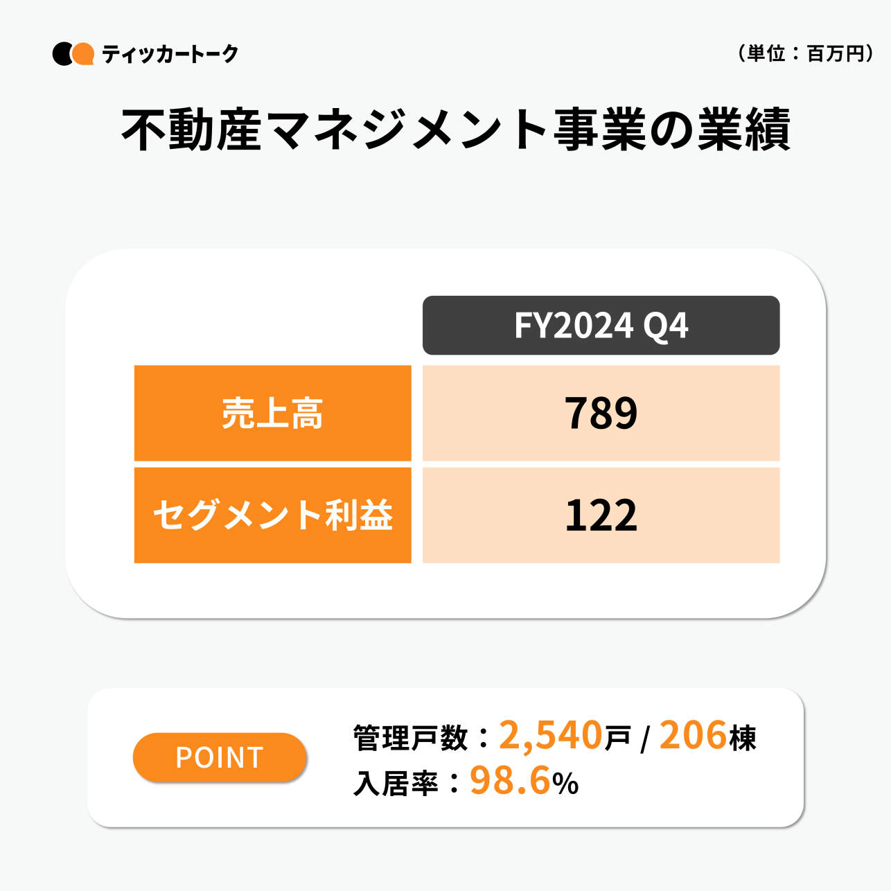 不動産マネジメント事業は、管理棟数・管理戸数の増加により売上・利益ともに前期を上回る堅調な推移となった。