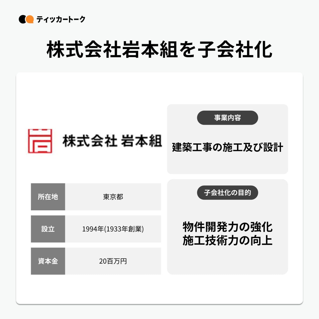90年の歴史を有し、施工技術に定評のある株式会社岩本組を2023年7月に子会社化し、連結決算を開始した。