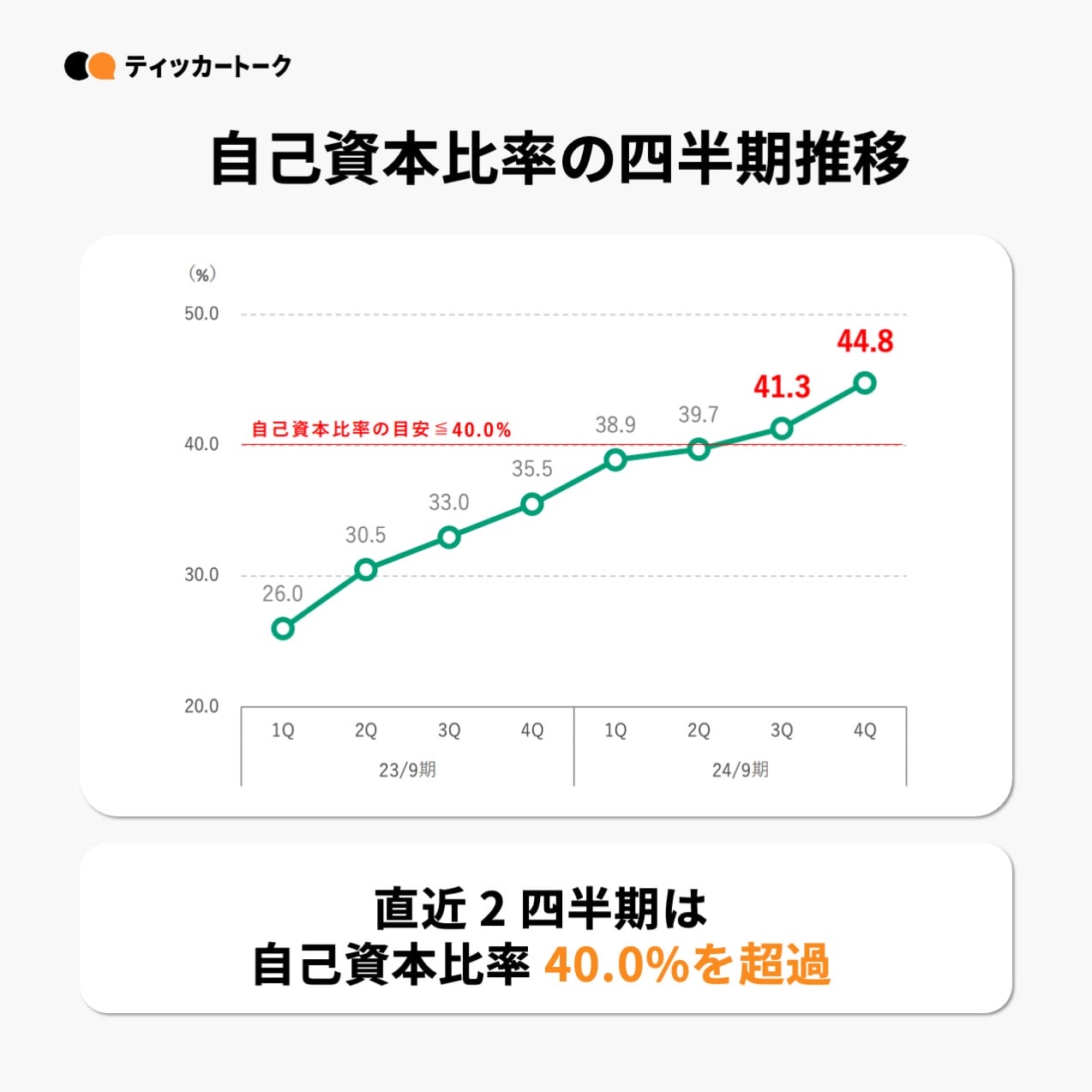 自己資本比率が直近 2 四半期は自己資本比率 40.0%を超過