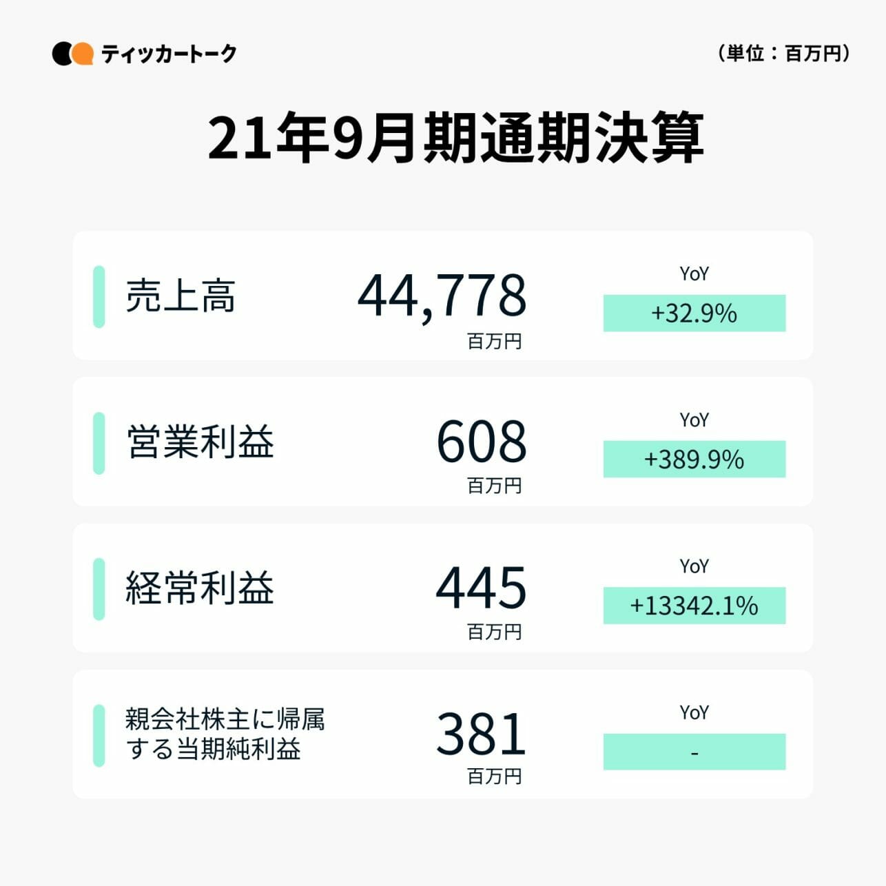 グッドスピードは11月12日、2021年9月期通期決算(2020年10月〜2021年9月)を発表した。売上高はYoY32.9%増の447億円、営業利益は389.9%増の608百万円だった。 ※2021年9月期第2四半期より連結決算に移行。前期比は2020年9月期単体実績と対比した数値を参考表示