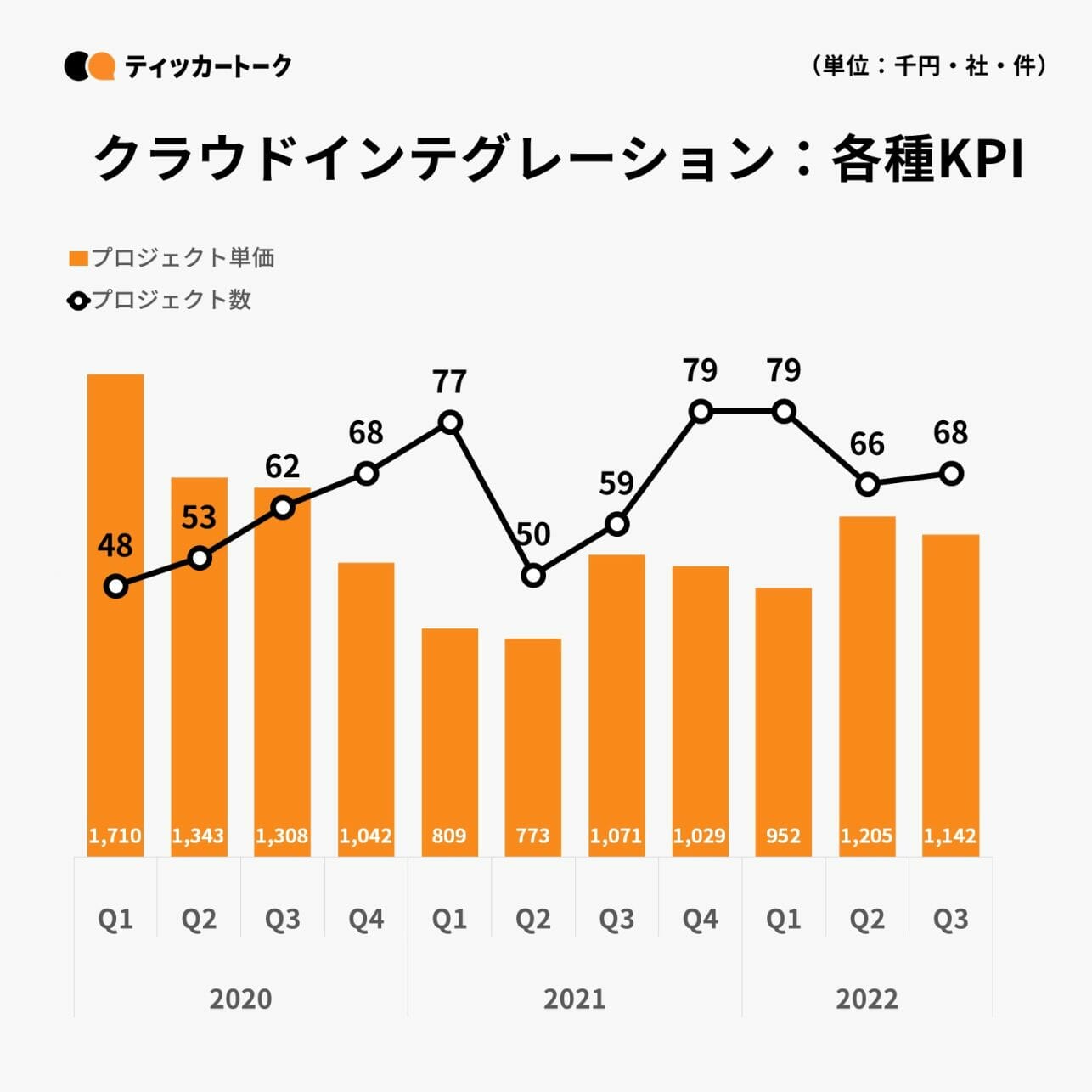 先行指標となるクラウドインテグレーションのプロジェクト数・プロジェクト単価は、共に高水準を維持。