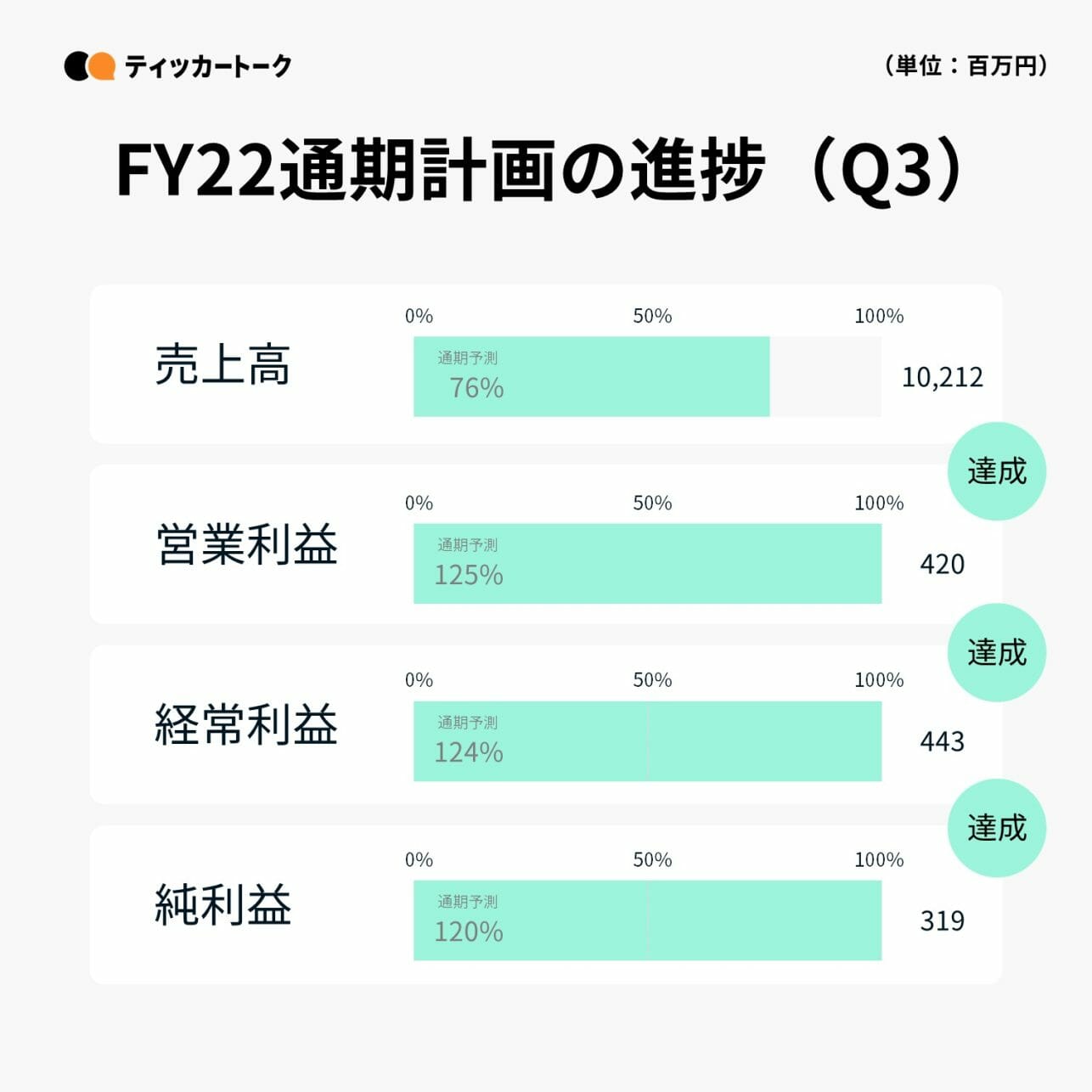 各事業が好調に推移した結果、Q3時点で既に営業利益、経常利益、純利益はFY22年通期予想を達成している。